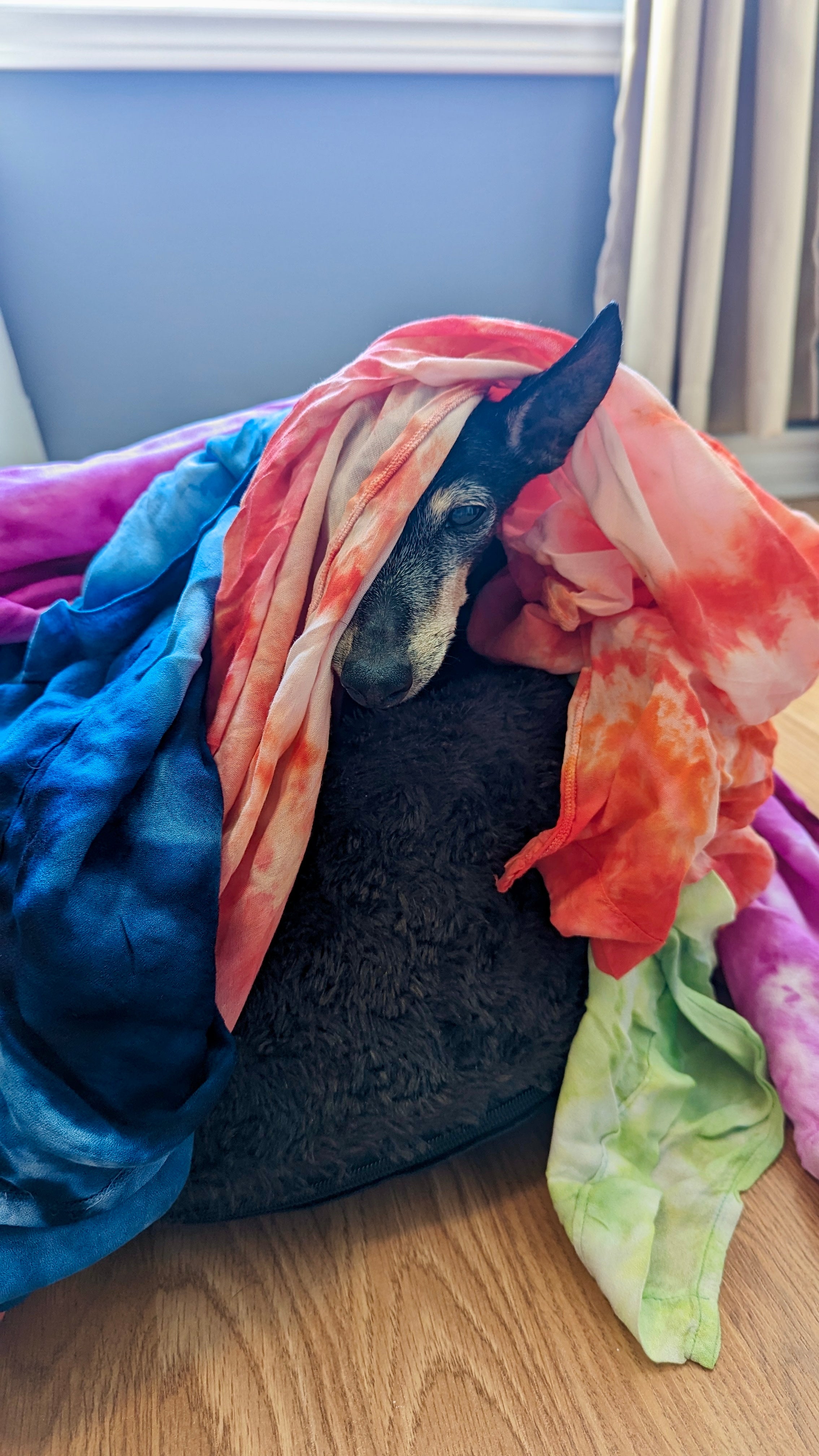 Meet Charlotte. She is the founder, designer, dyer, and CEO of Rain & Moonwater—a small-batch clothing brand rooted in creativity, individuality, and color. She studied fashion in Canada before earning her degree in Fashion Design from England, and today, she designs and hand-dyes every piece from her studio in Ottawa, Canada—often with her fur baby by her side.