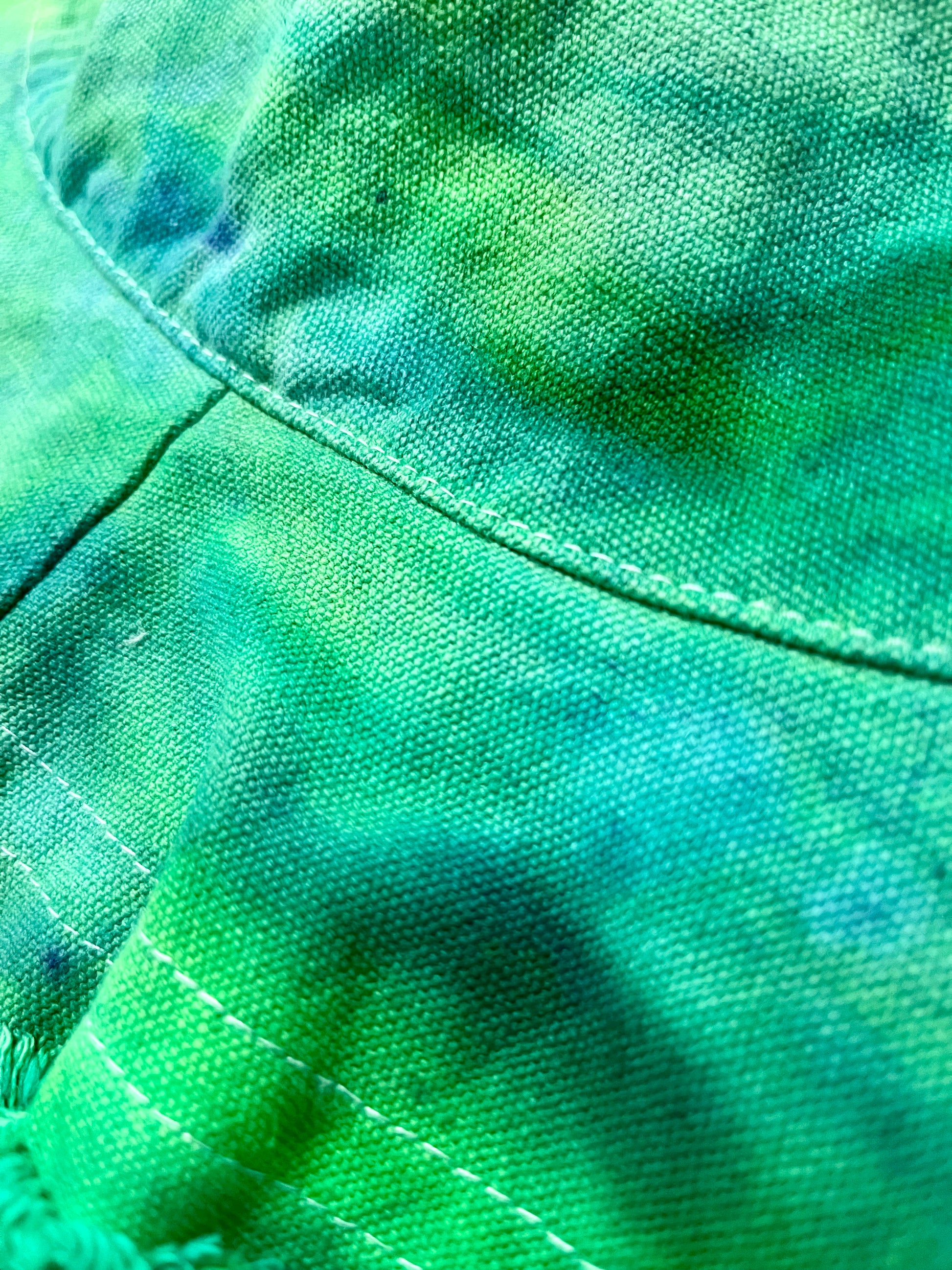 The patterns you see are from how the ice melts! Due to the ice dyeing process, each garment will be 100% unique and may not come out exactly as seen in the images.